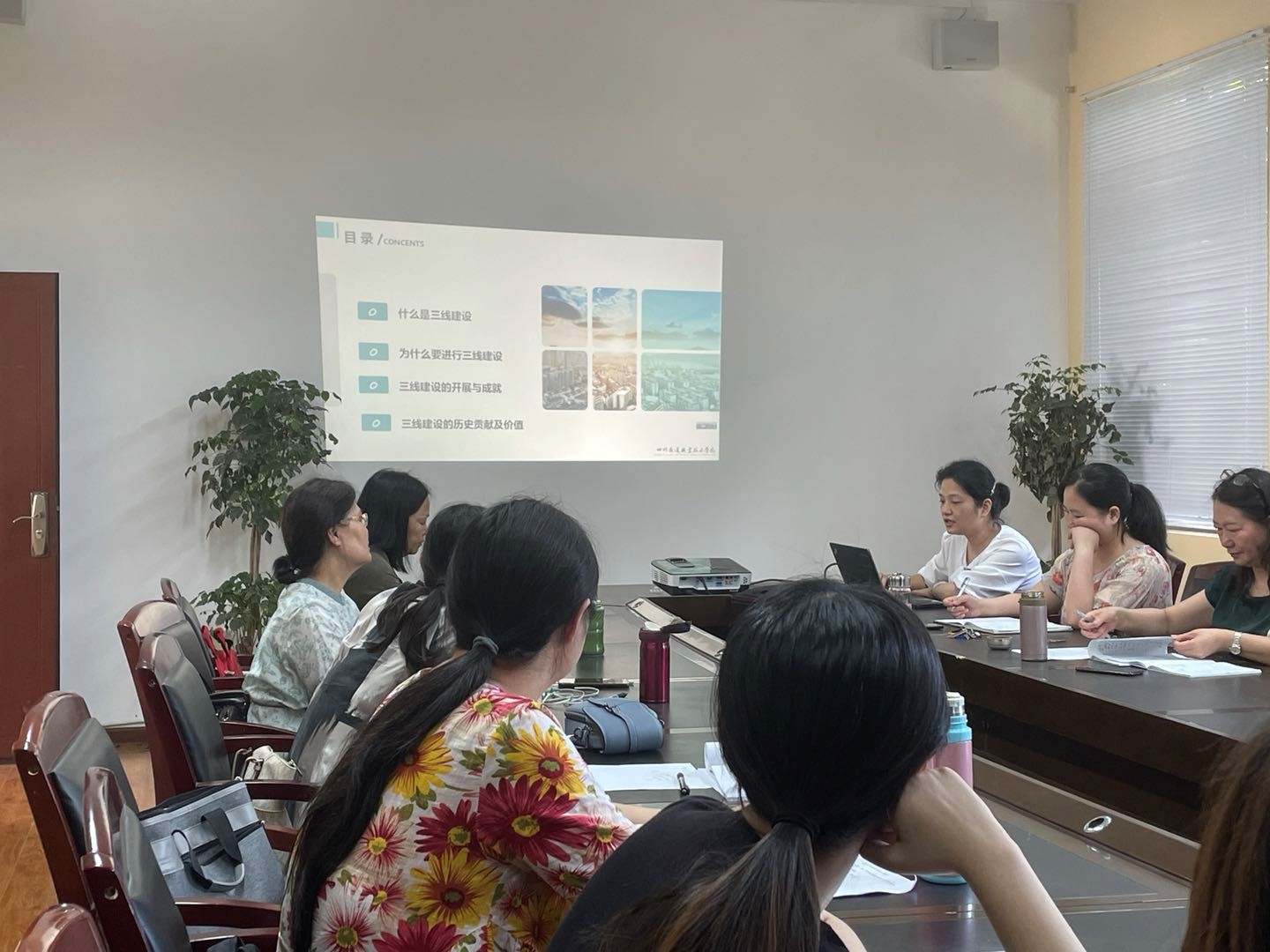 2021年6月15日,太阳成集团tyc全体教师在政治学习中,进行了思政教师讲党史的活动。主讲人为中共太阳成集团tyc教工支部书记文莉,介绍了整个“三线建设”的历史经过与意义,全体教师在这次学习中收获良多。