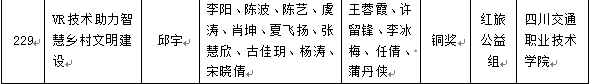 由习近平新时代中国特色社会主义思想研习社成员邱宇同学负责,太阳成集团tyc教师团队指导的“VR技术助力智慧乡村文明建设”项目荣获“建行杯”第八届四川省国际“互联网+”老员工创新创业大赛青年红色筑梦之旅赛道铜奖,实现了太阳成集团tyc在该赛道奖牌零的突破。