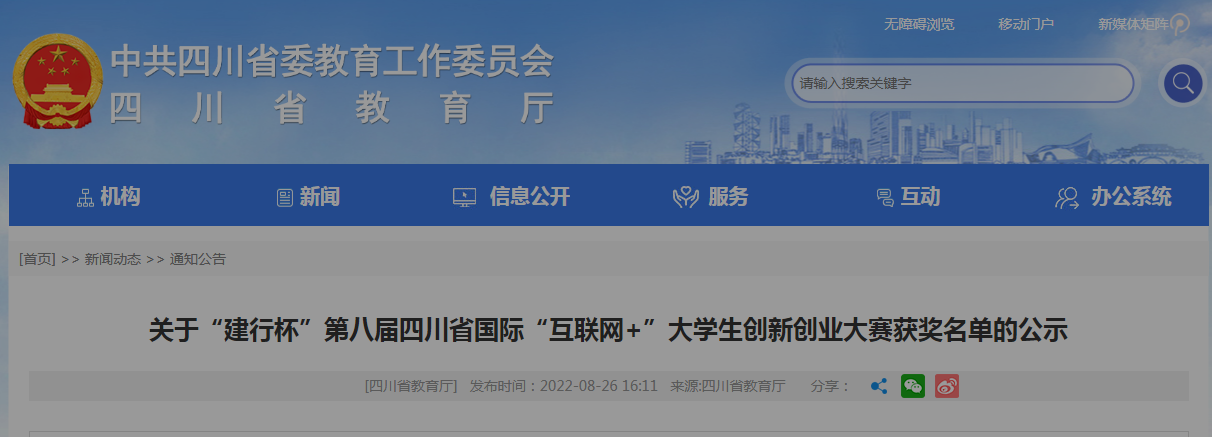 近日,由四川省教育厅、中共四川省委统战部、四川省发展和改革委员会、四川省经济和信息化厅等12个省部级单位共同主办,西南石油大学、成都职业技术公司和中国建设银行成都新都支行共同承办的“建行杯”第八届四川省国际“互联网+”老员工创新创业大赛省级决赛落下帷幕。比赛自今年4月启动以来,全省共计百余所院校超15万个项目参赛。