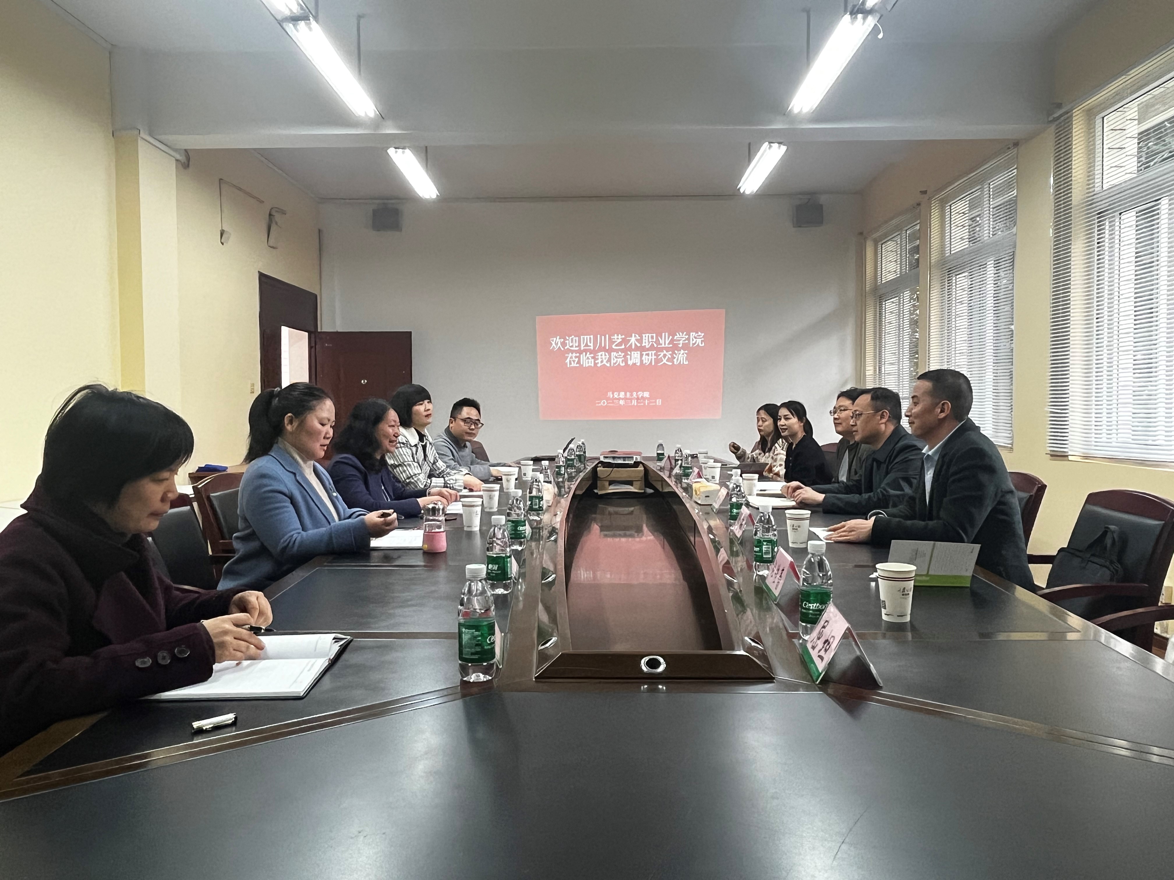 3月22日下午,四川艺术职业公司太阳成集团tyc领导来太阳成集团tyc开展学习调研与交流。四川艺术职业公司太阳成集团tyc经理赵刚、副经理赵春,公司党总支书记徐文,公司党总支副书记、经理王蓉霞等出席调研座谈会。