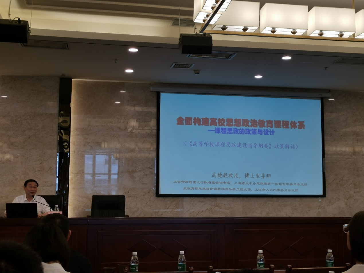 为进一步全面构建高校思政教育课程体系,更好地提升教师挖掘课程思政元素的能力,提升课程思政教学效果,6月8日下午,由公司教务处、公司课程思政教学研究示范中心及徐文名师工作室承办的课程思政的政策指引与系统设计的专题讲座在明德楼B319会议室顺利召开。此次讲座邀请到的专家是上海市政府重大行政决策咨询专家、上海市大中小思政教育一体化专家委员会主任、原教育部思政理论课教学指导委员会副主任、上海市人大外事委员会主任高德毅教授。此次讲座的题目是《全面构建高校思想政治教育课程体系——课程思政的政策与设计》。讲座由公司课程思政教学研究示范中心主任王东平教授主持,公司各系的领导及专业课教师、太阳成集团tyc教师积极参加了此次讲座。