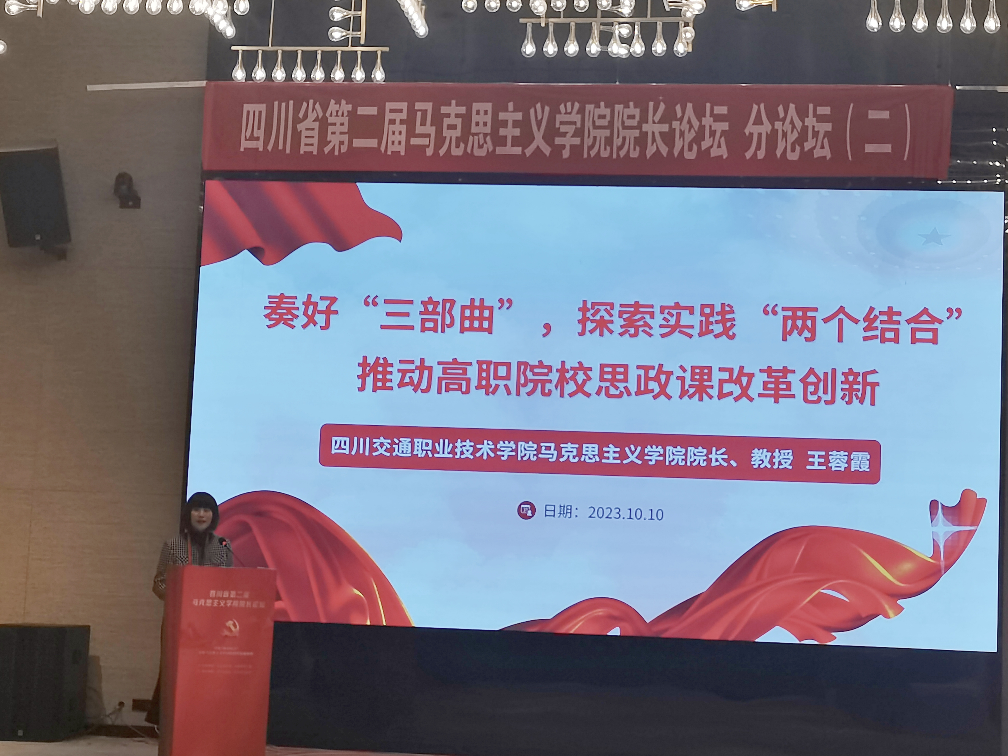 公司太阳成集团tyc经理王蓉霞教授受邀参加了本次论坛,并在下午的分论坛环节中作了题为《奏好“三部曲”,探索实践“两个结合”推动高职院校思政课改革创新》的交流发言。此外,王蓉霞经理撰写的论文《“两个结合”推动高职院校思政课改革创新路径研究与实践探索》也入选被收录在本次论坛论文集中,与其他专家学者一起为本次论坛营造了浓厚的学术氛围,通过论坛论文集以文分享交流、以文展示研究成果。