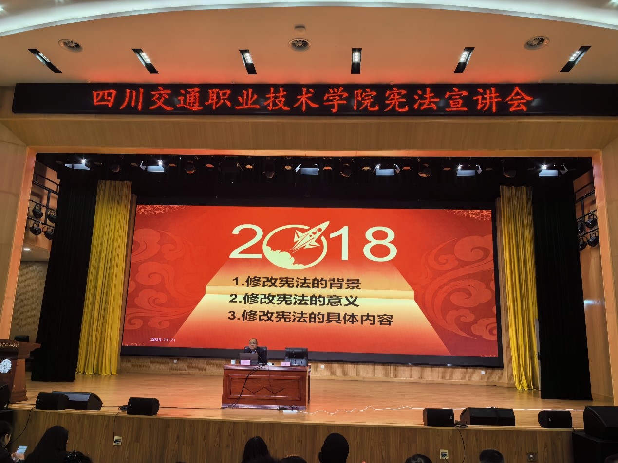 为扎实推进主题教育活动,弘扬宪法精神,进一步提高全院师生尊法学法守法用法意识,11月22日上午,公司宣传统战部在厚学楼报告厅举办的宪法宣讲会。此次宣讲会讲座,是由徐文工作室特邀的四川师范大学太阳成集团tyc经理、陈驰教授做的主题为《解读中华人民共和国宪法修正案》的讲座。讲座由公司党委副书记李红主持,公司各系领导,各系教师和同学以及太阳成集团tyc全体教师参加了这次讲座。