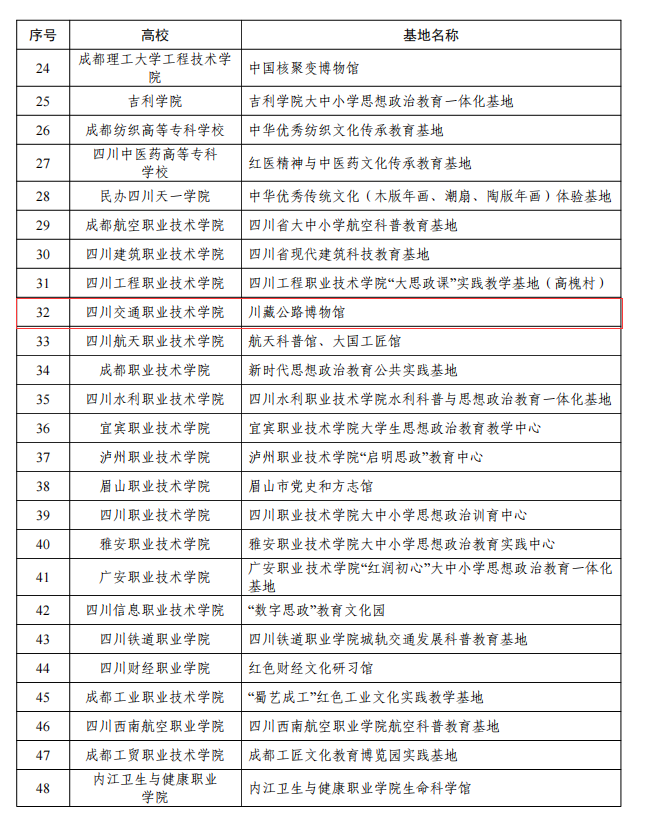 本次入选首批四川省大中小学思想政治教育一体化基地的是公司的川藏公路博物馆。该基地以习近平新时代中国特色社会主义思想为指导,以“两路”精神为主题打造的交通类博物馆,总面积1496平方米。基地建立至今,线下接待参观757场次,58000多人次,线上参观203.44万人次,获批科技部交通部国家交通运输科普基地、全国十佳文博馆、四川省职工思想教育基地、四川省青少年教育基地,省直机关党校、蜀道集团党校、重庆交大、成都七中现场教学点等。