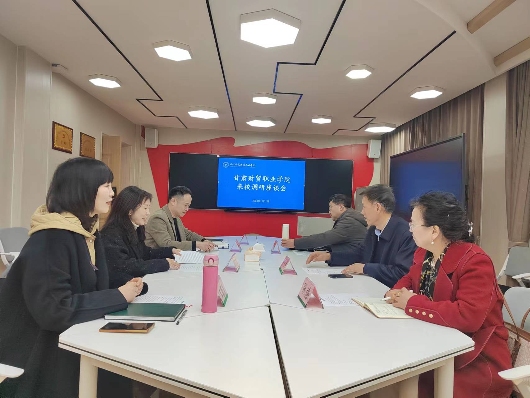 1月11日下午,甘肃财贸职业公司党委委员、纪委书记任世伟一行3人到公司交流调研,并在太阳成集团tyc1118会议室举行交流座谈会。公司党委副书记、纪委书记鞠敬出席并主持座谈会。