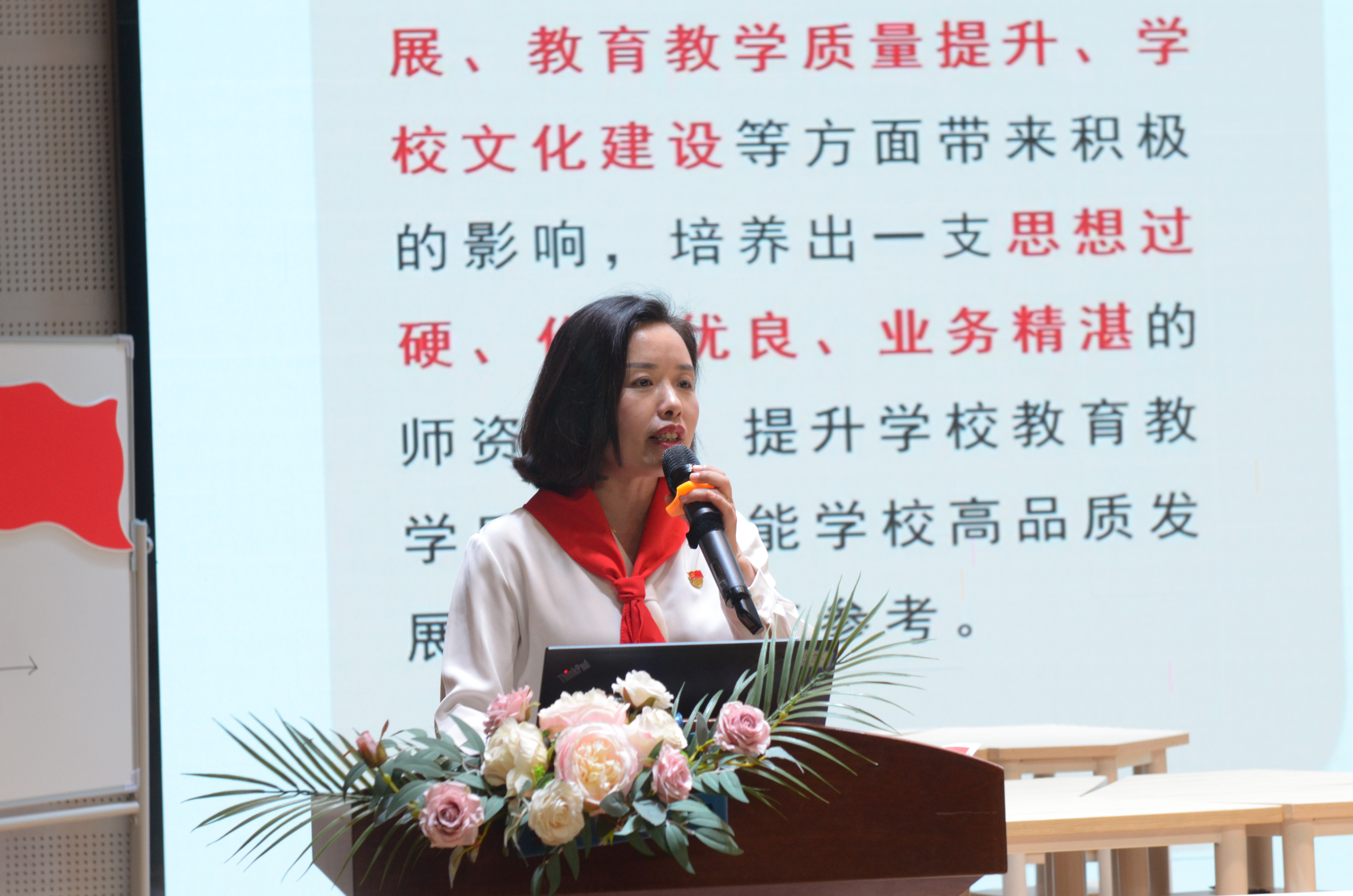 入队仪式观摩后,本次共同体“同课异构”教学设计展示活动暨温江区中小学党团队一体化建设育人实践研讨会正式开启。光华实验小公司党支部书记、董事长周丽做主题为“麦芒党建引领,双星榜样示范”的党建创新项目成果分享,介绍了光华实验小公司“四大链条”培育行动,提升教师“四篇”课程品质,做亮员工“四红”课程品牌的党建创新项目。