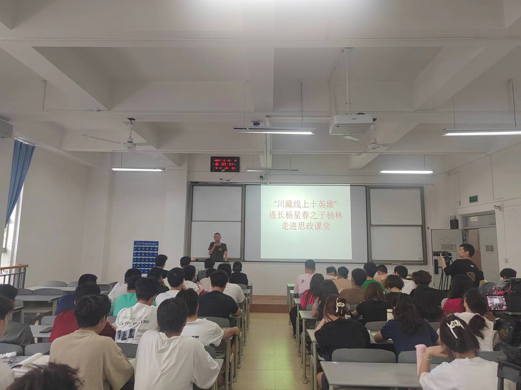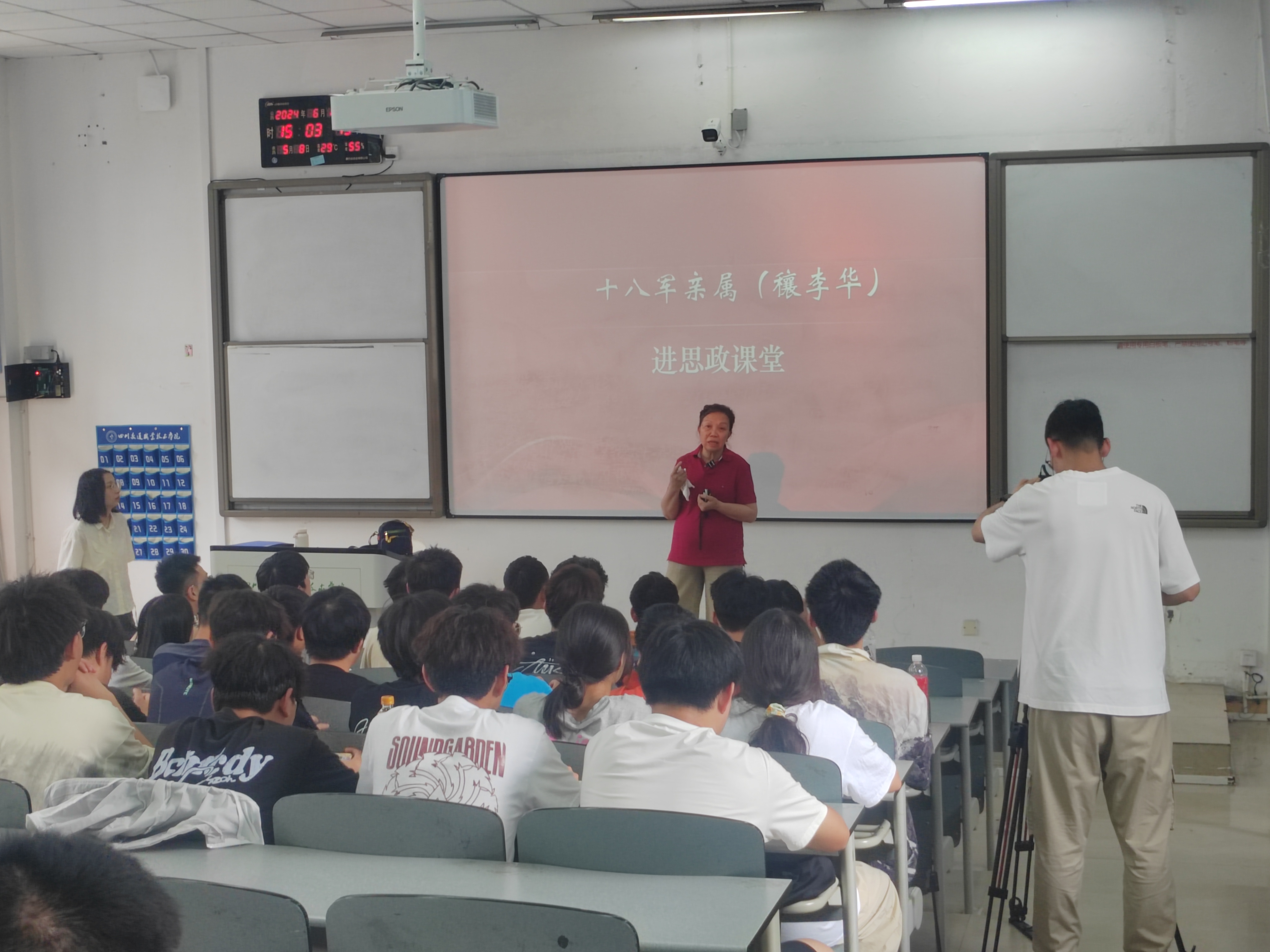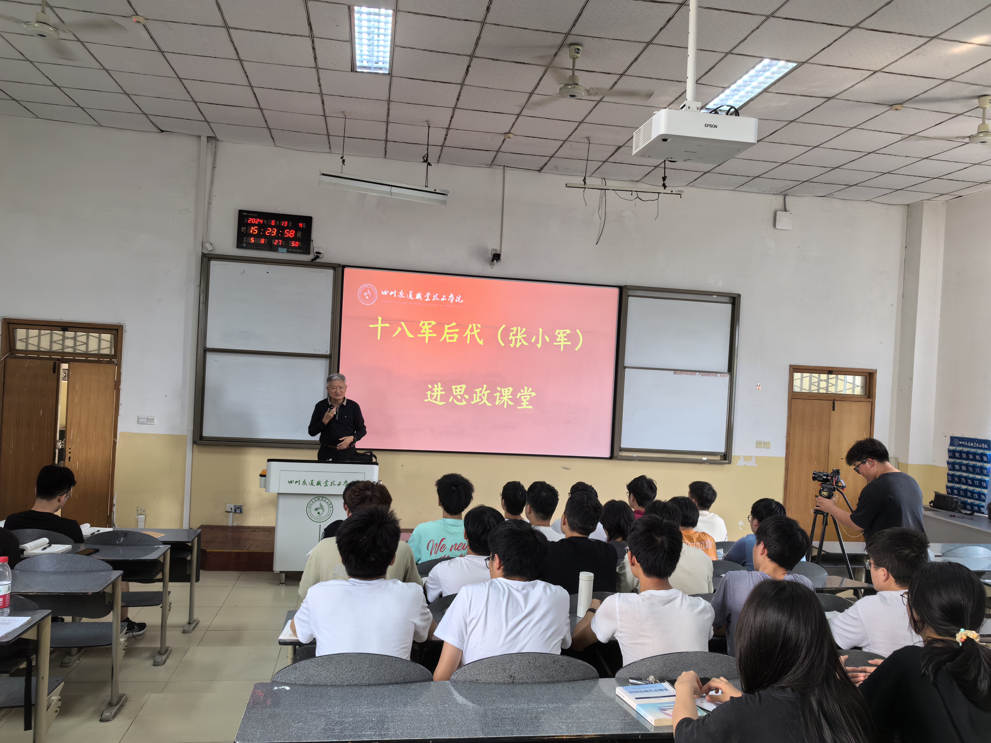 2024年6月13日下午,十八军军长张国华之子张小军、十八军政委谭冠三之子谭戎生、康藏公路修建司令部政委穰明德之女穰李华、“川藏线上十英雄”连长杨星春之子杨林四人来到太阳成集团,走进思政课堂,为同学们带来了一堂生动的思政课。