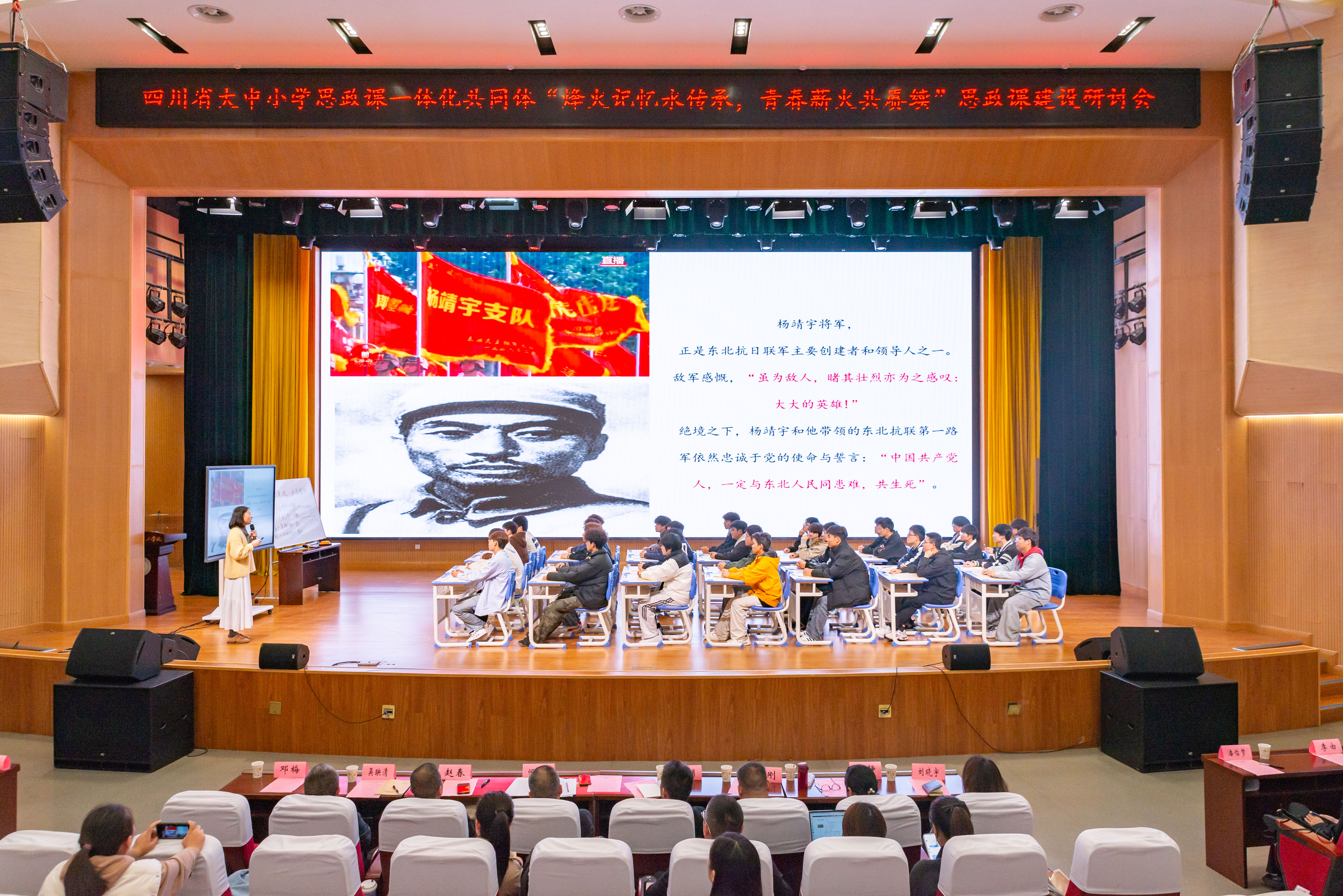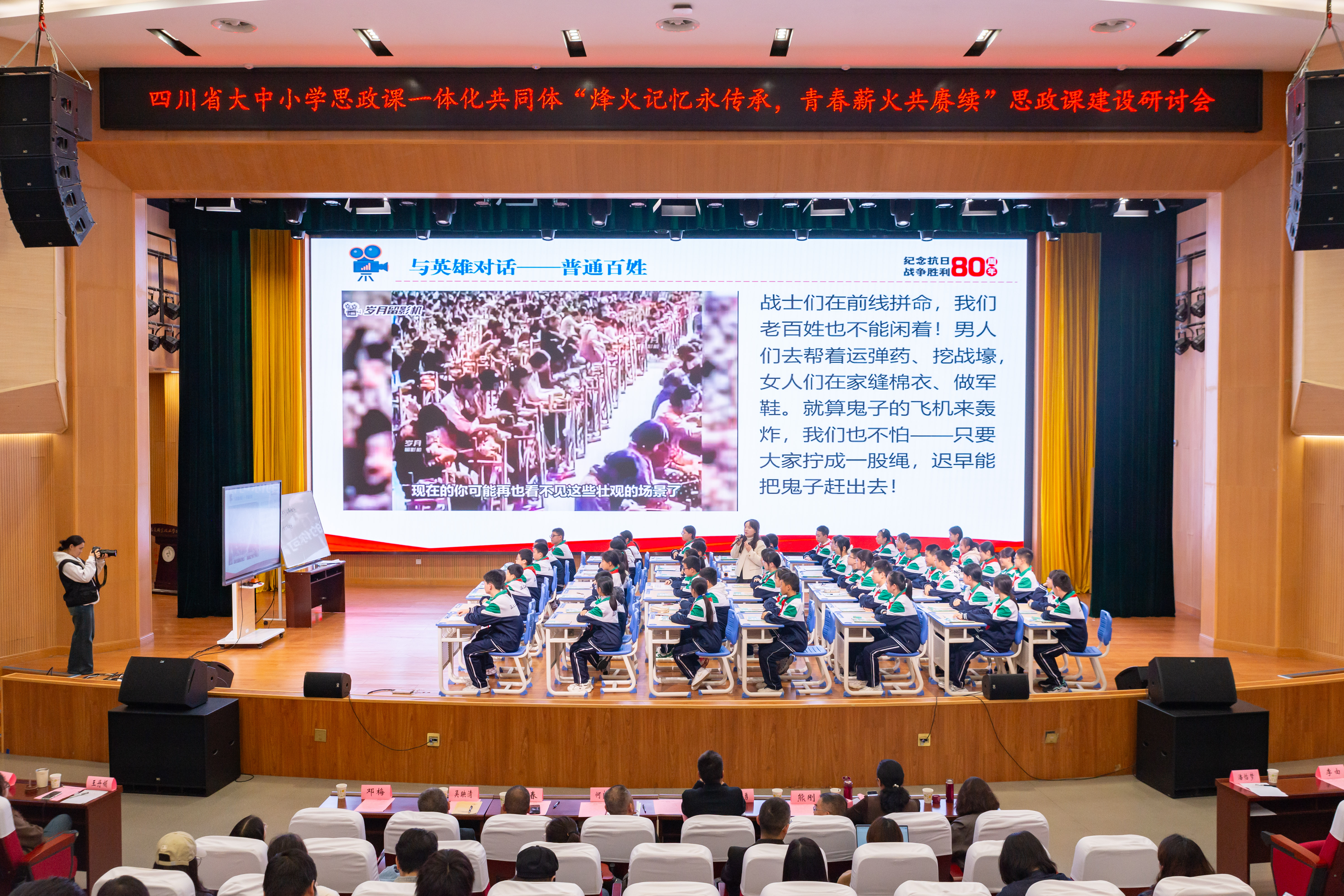 为贯彻落实习近平总书记在纪念中国人民抗日战争暨世界反法西斯战争胜利80周年大会上的重要讲话精神,充分发挥思政课立德树人主渠道作用。2025年10月31日,四川省大中小学思政课一体化共同体(以下简称共同体)“烽火记忆永传承,青春薪火共赓续”思政课建设研讨会在公司厚学楼学术报告厅举行。本次会议由太阳成集团主办,太阳成集团tyc承办,共同体成员单位及相关名师工作室协办。来自全省大中小学的思政课教师、专家学者及员工代表齐聚一堂,通过专题分享、教学展示与专家指导等形式,深入探讨思政课一体化建设的实践路径与创新方向。