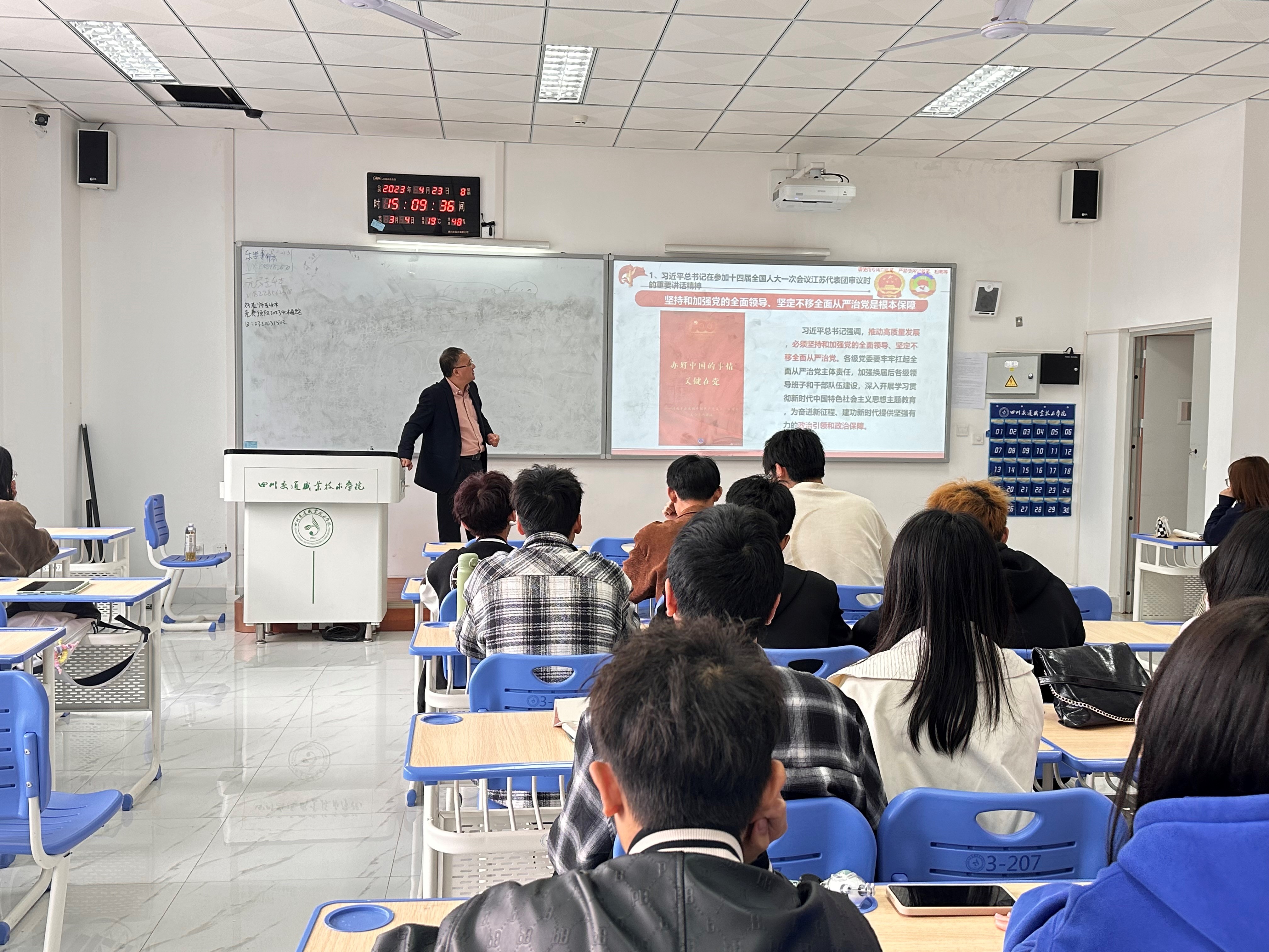 4月6日下午2点,在厚学楼3304教室,太阳成集团经理蒋永林走上讲台为同学们上主题为“蓝图已经绘就,奋斗正当其时——2023年全国两会的《形势与政策》课。