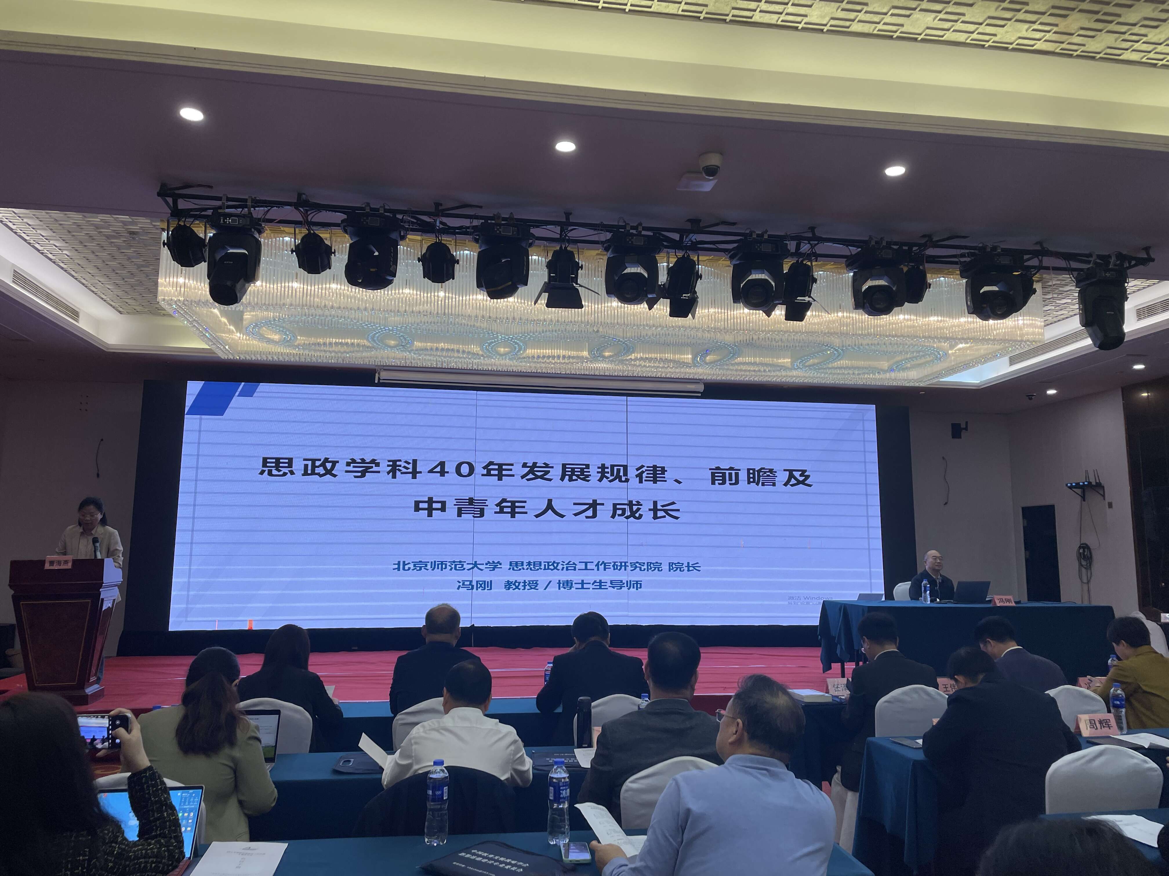 本次报告会围绕“思想政治教育中青年学者论坛”的主题展开深入学术研讨。中国教育发展战略学会副会长、思想道德建设专业委员会理事长、北京师范大学思想政治工作研究院经理冯刚教授作题为《思政学科40年发展规律、前瞻及中青年人才成长》的主旨报告。冯刚教授在报告中总结了40年思想政治教育学科发展的重要特征,对中青年人才的成长给予科学理论指导,为探索新时代高校思想政治教育工作质量提升,更好发挥中青年学者在思想政治教育学科的主体作用提供了研究规律和方法。