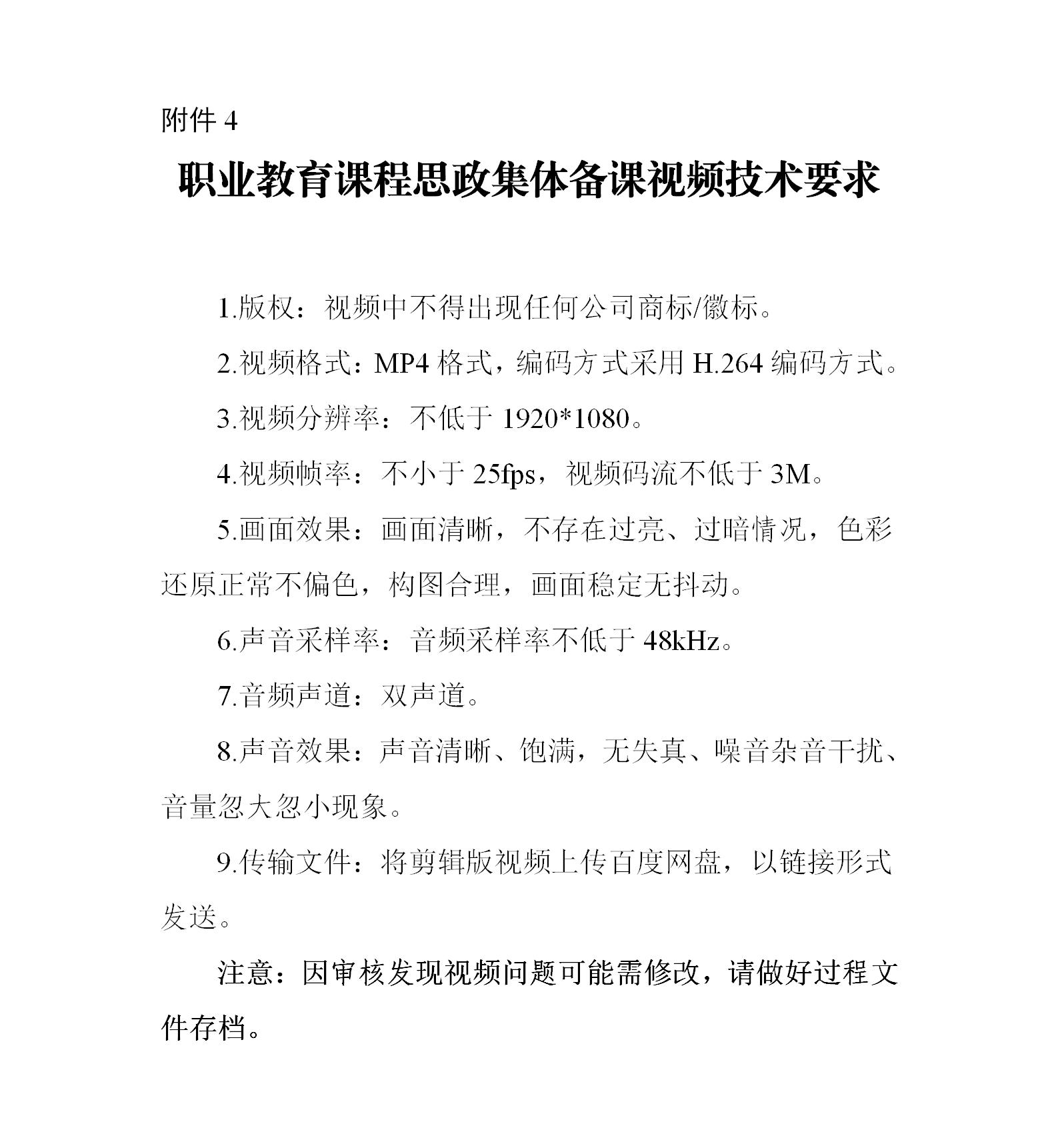 (三)参加线上教学展示的教学团队提前两周将说课及教学展示视频脚本提交承办单位,审核通过后,按集体备课视频技术要求(附件4)完成拍摄制作,并提前一周提交至国家职业教育智慧教育平台邮箱。
